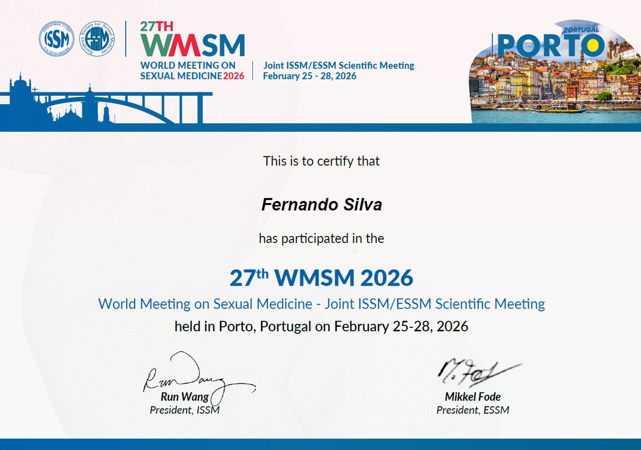 O Dr. Fernando Gomes é urologista com mais de 25 anos de experiência em prática clínica e cirúrgica, formação acadêmica e pesquisa nas áreas de medicina sexual e urologia reconstrutora. Formou-se em Medicina pela Universidade Federal Fluminense (UFF) em 1997, realizou residência médica em Cirurgia Geral no Hospital Universitário Antônio Pedro e especializou-se em Urologia no Hospital Naval Marcílio Dias. Posteriormente, completou fellowship em Cirurgia Urológica Reconstrutora no Hospital Universitário Pedro Ernesto (HUPE/UERJ), sob orientação do renomado Prof. Dr. Eloísio Alexsandro da Silva.
